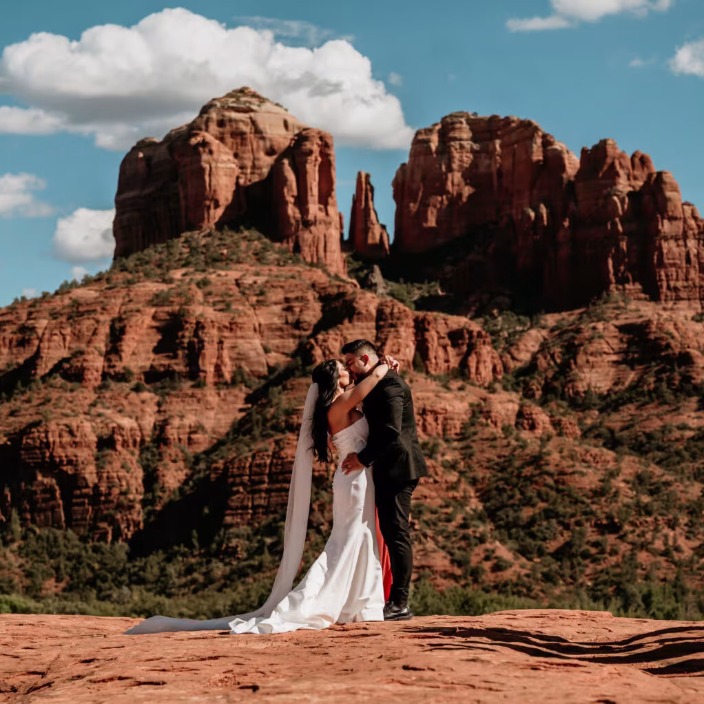 Located just two hours from Phoenix Sky Harbor Airport, Sedona is an easy-to-reach destination for couples who want a stress-free elopement. The drive is scenic, passing through the rolling desert landscape of Arizona, making your journey as beautiful as your wedding day.